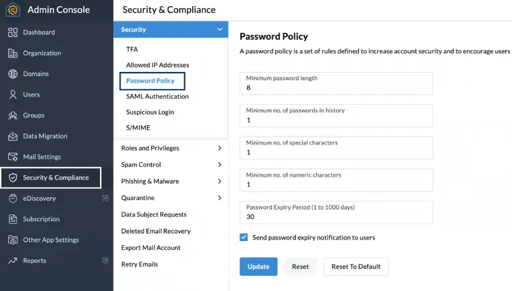 Zoho Admin Console provides a centralized interface that allows businesses to manage important aspects of their organization from one place. Administrators can control domains, users, groups, and overall system settings with ease, ensuring smooth and organized management of business communication.