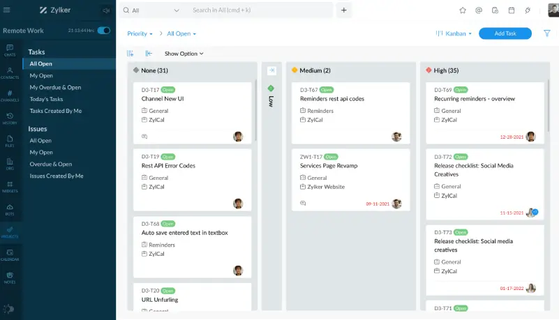 Zoho Cliq brings messaging, file sharing, and collaboration into one secure platform built for modern workplaces. With channels for different projects, direct messaging, and smart search options, teams can stay connected and find important information easily while working from the office or remotely.