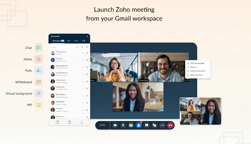 Zoho Meeting provides high-quality audio and video, easy scheduling, and screen sharing to ensure smooth communication during every session. With strong security controls and browser-based access, it enables professional and productive virtual meetings without the need for complex setups.