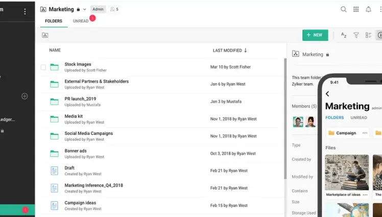 With Zoho WorkDrive, your team gets a secure online file management platform built for seamless collaboration. It provides a shared digital workspace where teams can store, organize, and manage documents efficiently while keeping everything structured and easy to find.